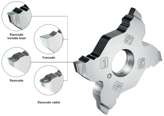 - Anchos y radios especiales con geometría de conformador de viruta CF5/GD8.