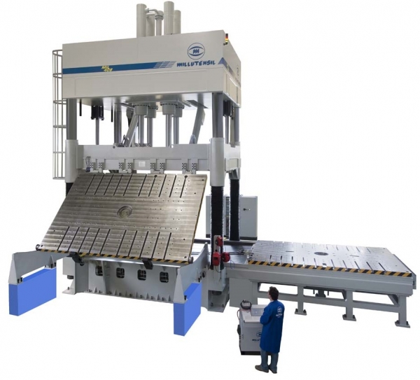 Las prensas de ajuste de moldes de la serie MIL CLASSIC presentan la salida del plato extraíble en el lateral, hacia el lado estrecho de paso de las columnas. Su campo de aplicación es el típico sector del plástico, la goma y la fusión a presión. Esta solución permite la basculación en el lado corto del plato extraíble hasta un 70º a ambos lados. En esta versión, también el plato superior es basculante en el lado corto desde 100° hasta 150°/180°.