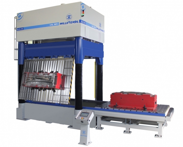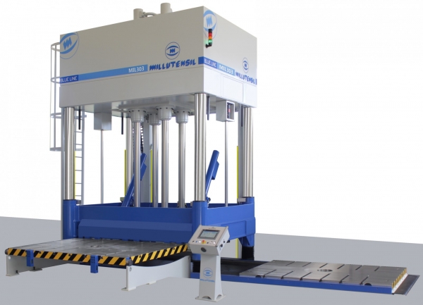 Las prensas de ajuste de moldes de la serie MIL CLASSIC presentan la salida del plato extraíble en el lateral, hacia el lado estrecho de paso de las columnas. Su campo de aplicación es el típico sector del plástico, la goma y la fusión a presión. Esta solución permite la basculación en el lado corto del plato extraíble hasta un 70º a ambos lados. En esta versión, también el plato superior es basculante en el lado corto desde 100° hasta 150°/180°.