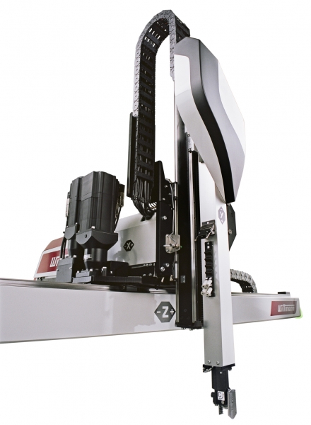 Los equipos disponibles en la actualidad cubren un rango de capacidad de carga de 3 a 7 kg. Para evitar, en línea con el diseño típico de pinzas delgadas para tales aplicaciones, que cualquier contorno de interferencia adicional ingrese en el área del molde, toda la fuente de alimentación eléctrica y neumática de la pinza se encuentra dentro del eje vertical en los robots SONIC. Como es habitual en otros robots WITTMANN, las válvulas de agarre y las entradas están asentadas directamente en el eje vertical para garantizar tiempos de respuesta cortos.