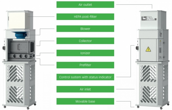 El purificador de aire VC 60 combate virus, bacterias, polen y otros gérmenes en espacios cerrados. Reducir significativamente la concentración de virus en ambientes interiores y minimizar el riesgo de infección: eso es lo que representa el sistema de filtración electrostático de LTA, empresa alemana representada en España por Maquinaria Eurotec. El aire extraído se limpia de manera óptima a través del probado principio de separación. El sistema de filtración se caracteriza por una larga vida útil y un rendimiento duradero.