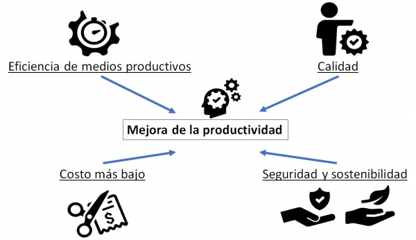 El aumento de la productividad se asocia generalmente a optimizar los flujos productivos mejorando los medios productivos, cambiando los parámetros que afectan a la fabricación, etc., pero actualmente hay otro concepto que entra en el juego y es la digitalización de los medios y procesos. Esto nos está llevando hacia el concepto de fábrica inteligente que representa un salto de la fabricación tradicional a un sistema conectado y flexible, uno que emplea datos de operaciones y medios de producción conectados que permitan aprender y adaptarse a las nuevas necesidades de producción.