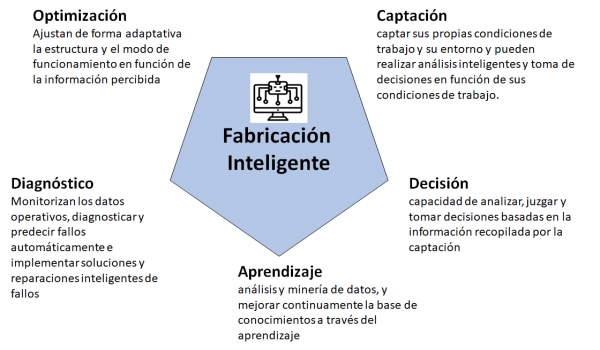 La fabricación inteligente es la integración de tecnologías y de procesos de fabricación inteligentes para resolver problemas de fabricación. Se refiere a la representación y el aprendizaje del conocimiento, la percepción y el análisis de la información y la toma de decisiones inteligente y la ejecución de las actividades de fabricación a lo largo del ciclo de vida completo de los productos para realizar la deducción del conocimiento, la detección dinámica y la toma de decisiones autónoma con respecto al proceso de fabricación, los sistemas y equipamiento. La fabricación inteligente incluye todos los aspectos de la producción, incluido el diseño, el procesamiento y el montaje inteligentes.