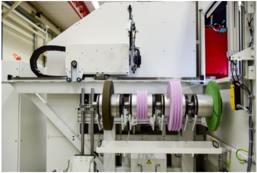 En este proceso, el cambiador ofrece a los usuarios otros beneficios: puede cargarse con varias herramientas del mismo tipo para poder reemplazar -de manera rápida y automática- las muelas desgastadas. El cambiador de herramientas también hace posible el procesamiento sin supervisión, incluso de piezas de trabajo complejas que requieren muelas con diferentes perfiles. Los tiempos de configuración se reducen de manera adicional, ya que la unidad se puede cargar mientras el proceso está en curso. El cambiador de herramientas también mejora el manejo general de la máquina, ya que es más sencillo para los trabajadores cargar el cambiador con grandes muelas que colocarlas directamente en la máquina.