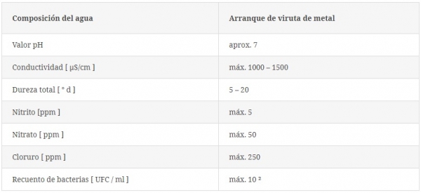 Un parámetro importante del agua para el mezclado es el valor pH. Un valor de 7 es óptimo, ya que el agua se comportará de manera neutral. Valores de pH de hasta 9 aún son tolerables, siempre y cuando no existan otros motivos en contra del uso de este tipo de agua. Lo que es inaceptable son valores de pH inferiores a 6. Este tipo de agua podría reducir el valor pH de la emulsión de lubricante refrigerante desde el momento de prepararla, lo que tendría consecuencias de gran alcance, como por ejemplo la reducción de la protección contra la corrosión.