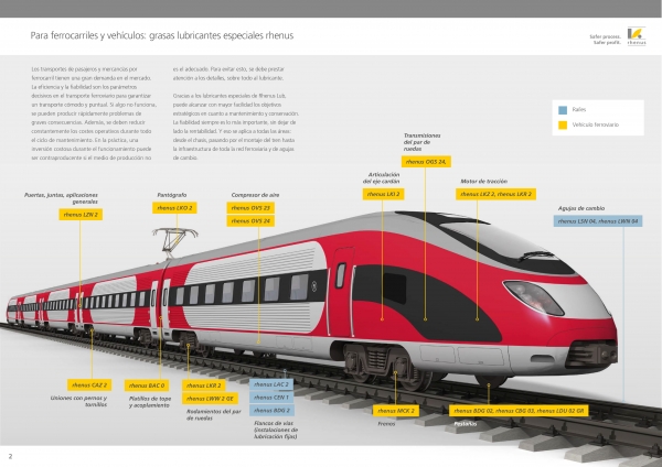 La seguridad en los raíles implica que numerosos detalles técnicos deben ajustarse perfectamente entre sí. Para que el tren siga siendo uno de los medios de transporte más seguro del mundo, hay que tener en cuenta detalles que, en principio, pueden parecer que no tienen importancia, como puede ser elegir la grasa. Dicha grasa hace que los rodamientos de las ruedas, así como las coronas dentadas, topes, agujas de cambio o señalizaciones, funcionen de forma impecable. Como cabe esperar, los operadores responsables de los sistemas de transporte ferroviario buscan productos con una vida útil elevada y que garanticen un funcionamiento seguro. Es por ello que el especialista en lubricantes de Mönchengladbach (Alemania) Rhenus Lub ha desarrollado grasas de altas prestaciones especiales para las condiciones más exigentes del transporte ferroviario. Estas han sido probadas en procesos complejos y para diferentes aplicaciones.