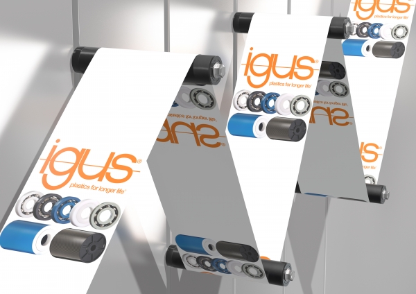 Los rodillos de guiado con rodamientos de bolas se utilizan para el cambio de dirección de las cintas de film plástico o etiquetas. Fabricados hasta ahora en aluminio anodizado, el nuevo rodillo de guiado igus de color negro supone una solución revolucionaria para la tecnología de embalaje y etiquetado. Se trata de un sistema listo para instalar que no solo convence estéticamente, sino también técnicamente. Consiste en un tubo de aluminio anodizado negro y rodamientos plásticos de bolas xiros libres de mantenimiento y de funcionamiento suave.