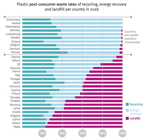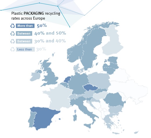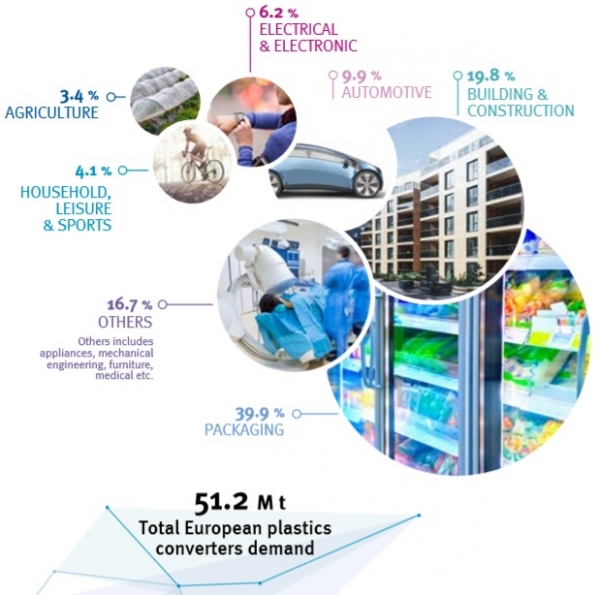 En cuanto a las cifras de residuos plásticos posconsumo, la tendencia es más positiva: la recogida aumentó de 27,1 millones de toneladas en 2016 a 29,1 millones en 2018. También las cantidades recogidas para ser recicladas aumentaron casi un 12%, llegando a más de 9,4 millones de toneladas. La demanda de los transformadores europeos en 2018 se mantuvo estable en comparación con 2017.