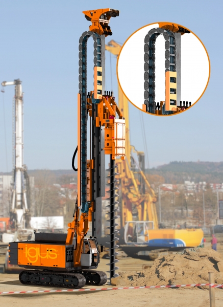 Los cables y tubos de los equipos de perforación, plataformas de grúas móviles y polipastos no solo tienen que soportar niveles extremos de tensión mecánica, sino que, además, deben guiarse de forma segura y compacta en vertical junto con la máquina a la que están sujetos. Para este tipo de aplicaciones, los usuarios normalmente confían en pesadas cadenas portacables de acero. Sin embargo, estas implican un gran trabajo de instalación y el riesgo de que la cadena portacables tenga que sustituirse por completo en caso de mantenimiento o reparaciones. Al mismo tiempo, una parada no planificada de la maquinaria conlleva costes de inactividad. Este es el motivo por el que igus desarrolló YE, “la primera cadena portacables híbrida del mundo”, que combina las ventajas del acero y el polímero.