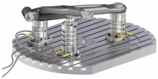 Los pilares de sujeción aseguran un funcionamiento libre de colisiones, una aplicación de sujeción definida y una simulación fiable de mecanizado.