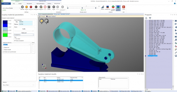 La versión 2021 cuenta con un nuevo modo de comparación que detecta el exceso de material durante una simulación rápida y oculta. Muestra una comparación sólida entre los modelos CAD/CAM o el material de corte anterior y el modelo simulado NCSIMUL.