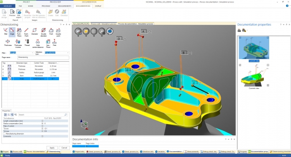 Integrado a NCDoc, “Dimensionamiento” es una nueva función que crea instrucciones de control para los operadores durante el proceso CNC. “Define una lista de verificación de dimensiones con tolerancias definidas por el usuario; define automáticamente la medida mínima necesaria para cada corte; genera una visión integral para el programador y el operador en la simulación 3D, y trabaja con la plantilla de documentación NCDoc”.