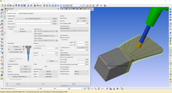 La última versión se basa en la popular creación de curvas totalmente automática de 5 ejes, dividiendo los pasos cuando se requieren curvas más complejas. También mejora las capacidades de sincronización entre las curvas límites inferior y superior.