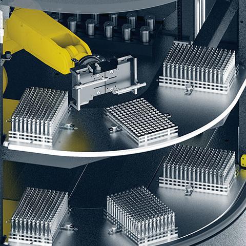 Esta solución de automatización Zoller para la medición de herramientas es especialmente rápida y, a la vez, extremadamente compacta. Acoplada directamente a la máquina de medición universal Zoller titan, threadCheck o genius, roboSet 2 carga esta durante las 24 h los 7 días de la semana, de forma totalmente automática.