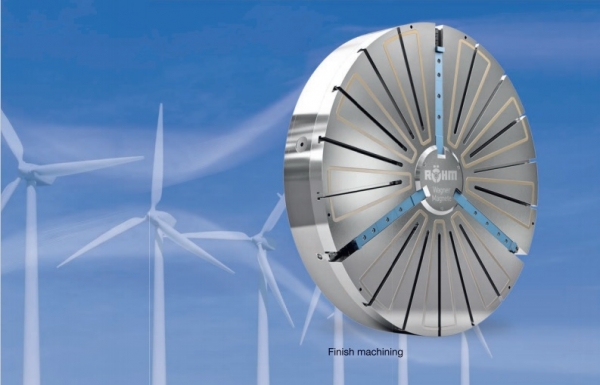 Röhm ofrece soluciones de sujeción para todas las necesidades de la energía eólica. En el mecanizado de grandes rodamientos y uniones rotativas, ofrece chucks especialmente adaptados a los requerimientos cambiantes de torneado, fresado y mecanizado fino.