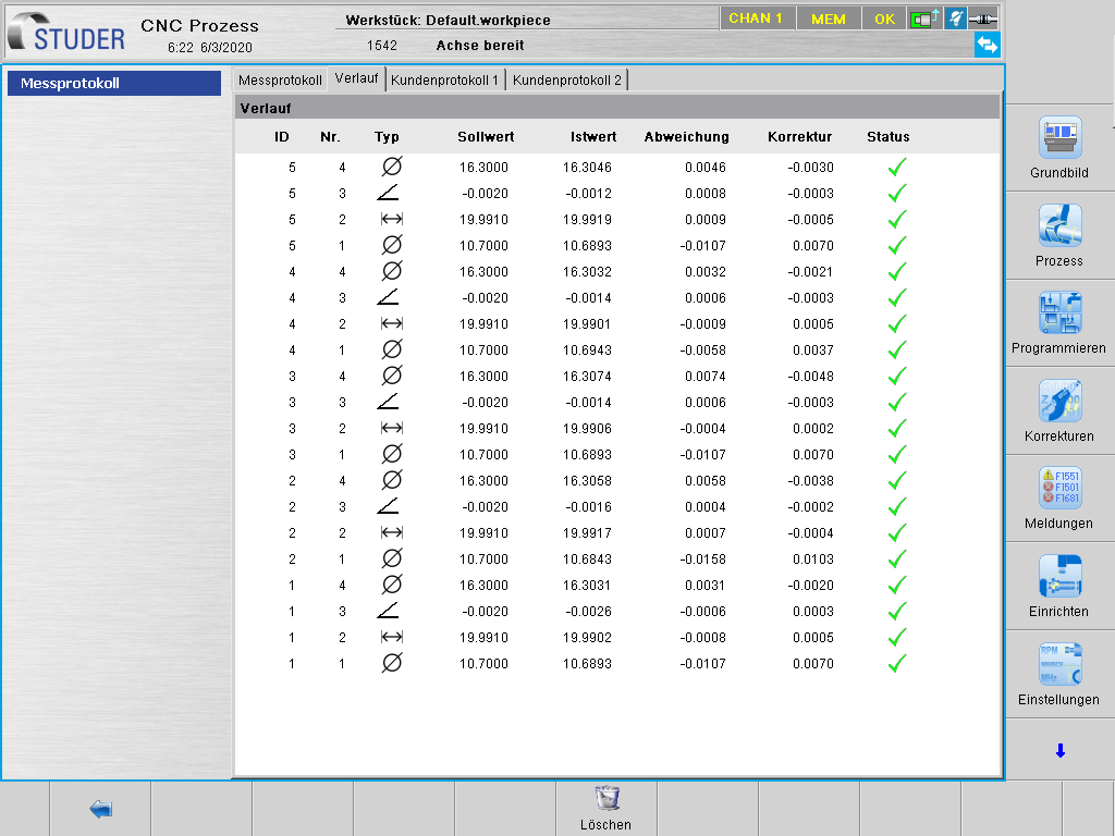 Studer cuenta con más de 10 años de experiencia en el uso de tecnología de medición láser integrada en la máquina, que han sido evaluados para ensayos en la medición de muelas abrasivas o piezas de trabajo. Estos estudios fundamentales tienen una tradición en Studer, para garantizar que la empresa esté preparada para las tendencias futuras en tecnología de producción. Este conocimiento y experiencia se ha utilizado para dar respuesta a los requisitos actuales. Los sistemas utilizados en otras industrias para el control de herramientas se han desarrollado aún más en Studer, específicamente sobre la base de la última tecnología de medición láser, disponible solo recientemente, para medir piezas de trabajo en máquinas rectificadoras.