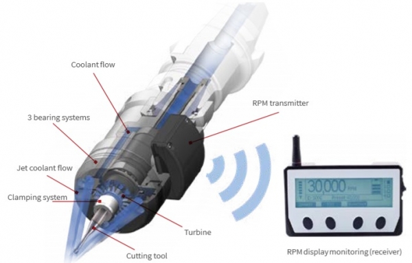 Además, la tecnología Jet Spindle posibilita a los operadores la capacidad de controlar la velocidad giratoria de las herramientas de corte en tiempo real; optimizando las condiciones de corte para una eficiencia de mecanizado aún más completa.