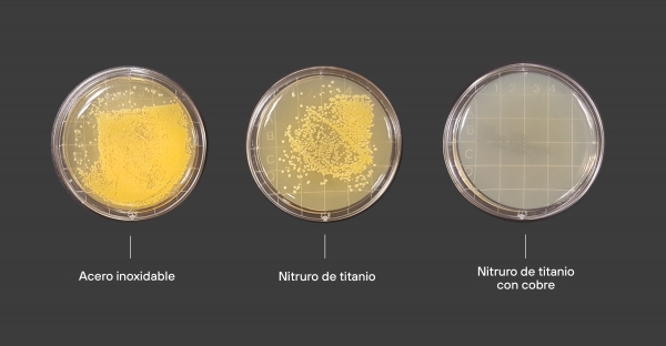 Tekniker ha desarrollado recubrimientos por deposición en vacío (en inglés, Physical Vapour Deposition –PVD-) de nitruros de titanio y de tántalo (TiN y TaN) con dopantes metálicos como el cobre para fabricar superficies que destruyen los patógenos. También recubrimientos basados en matrices de Sol-Gel y pinturas o lacas con nanopartículas metálicas y de óxidos embebidas que funcionan como agentes antibacterianos.