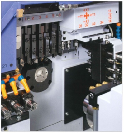 - La unidad de taladrado transversal de alta velocidad del quinto husillo con una capacidad máxima de 10.000 min-1 es adecuada para el mecanizado de diámetros pequeños y cuatro tipos de puestos de herramientas de acuerdo a las piezas a mecanizar.