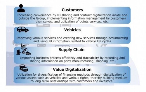 En el sector de la automoción, durante un periodo de transformación profunda sin precedentes, Toyota aspira a convertirse en una compañía de movilidad para prestar un amplio abanico de servicios relacionados con el transporte. Para conseguir ese objetivo y promover nuevas alianzas tanto dentro como fuera del grupo, es importante crear un entorno en el que los clientes que utilizan los productos y servicios y las diversas empresas que se los proporcionan puedan conectarse de forma más abierta con total seguridad, como la cadena de bloques (blockchain).