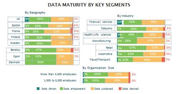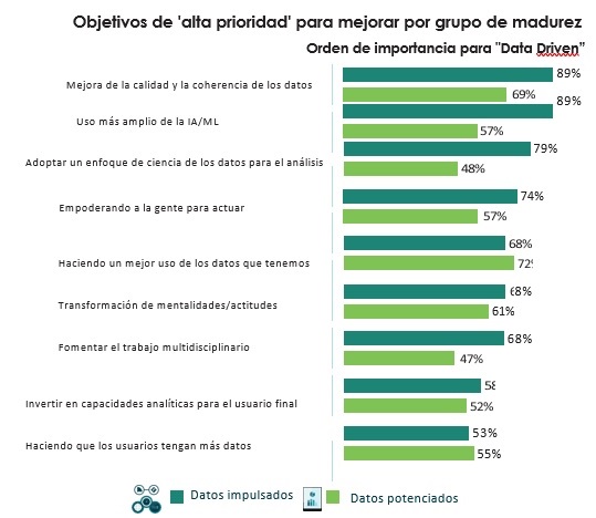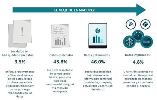 También se desvela que, en la mayoría de las empresas, se sitúan en la categoría de menor madurez, lo cual conduce a una desventaja competitiva, especialmente en los mercados actuales, que se mueven rápidamente y están cada vez más involucrados por las tecnologías digitales. Y, por ello, para llegar a una mejora y conseguir un negocio impulsado por datos, se necesita implementar una variedad de técnicas y tecnologías avanzadas independientemente de su ubicación, tamaño y sector.