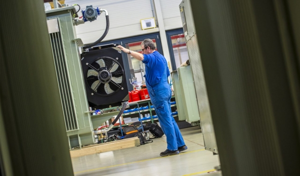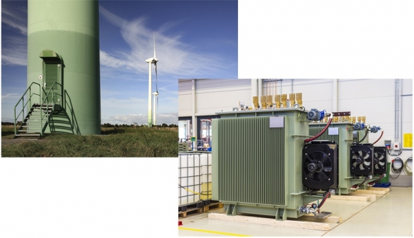 Un reto característico cuando se instalan transformadores en turbinas eólicas es hacer uso del muy limitado espacio disponible. Este es especialmente el caso cuando se requiere una refrigeración eficiente del aceite aislante utilizado para disipar la pérdida de potencia en forma de calor. Debido a que la vida útil de esta pieza crucial era primordial para los especialistas en transformadores de Offenburg, recurrieron a una solución de KTR: el refrigerador de aceite y aire OAC.