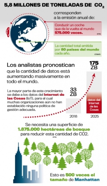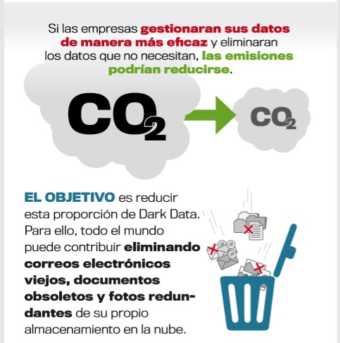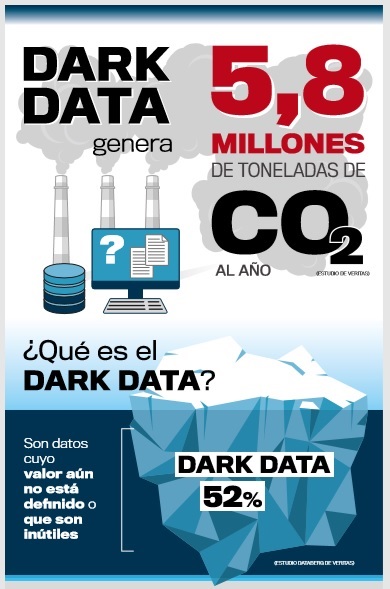 De promedio, el 52% de todos los datos almacenados por las organizaciones en todo el mundo son “oscuros”, ya que los responsables de su gestión no conocen su contenido o valor. Se ha hablado mucho sobre el coste financiero del Dark Data, pero el coste ambiental, hasta ahora, a menudo se ha pasado por alto. Los analistas predicen que la cantidad de datos que el mundo almacenará crecerá de 33 ZB en 2018 a 175 ZB en 2025. Esto implica que, a menos que la gente cambie sus hábitos, habrá 91 ZB de datos oscuros en cinco años, cuatro veces más que el volumen que tenemos hoy, con toda la energía asociada a la alimentación de la infraestructura en la que vive.