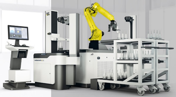 cora de Zoller tiene siete componentes en su hoja de configuración: tres herramientas completas y dos portaherramientas, cada uno con una herramienta correspondiente. Esta se encaja en el carro de herramientas y activa a propósito la cabina de herramientas keeper. Allí, abre el segundo cajón desde la izquierda. Dos herramientas completas están en los espacios 18 y 19. cora las verifica usando los chips RFID incorporados y el lector luego las coloca a la derecha en los espacios libres en el carro de herramientas. Estas dos herramientas están listas para insertarse en la máquina-herramienta tal como están; ya están medidas y los datos de la herramienta ya se han incorporado a la base de datos. La tercera herramienta completa que retira del keeper aún requiere ser medida, por lo que cora la coloca en el extremo izquierdo del carro de herramientas. Luego, abre un cajón en el keeper de al lado, coge dos portaherramientas y los coloca también en el carro de herramientas. Coge las dos herramientas que aún necesita de la cabina de herramientas toolOrganizer. De camino a la bancada de trabajo, cora se mueve hábilmente para evitar un robot.