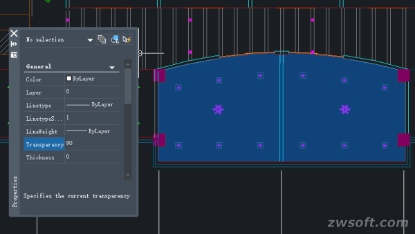 Ahora puede definirse la transparencia de objetos, sombreados, referencias, capas, etc. para distinguirlos. Con el objetivo de una mayor eficiencia, la transparencia de los objetos en una capa se puede configurar a la vez.